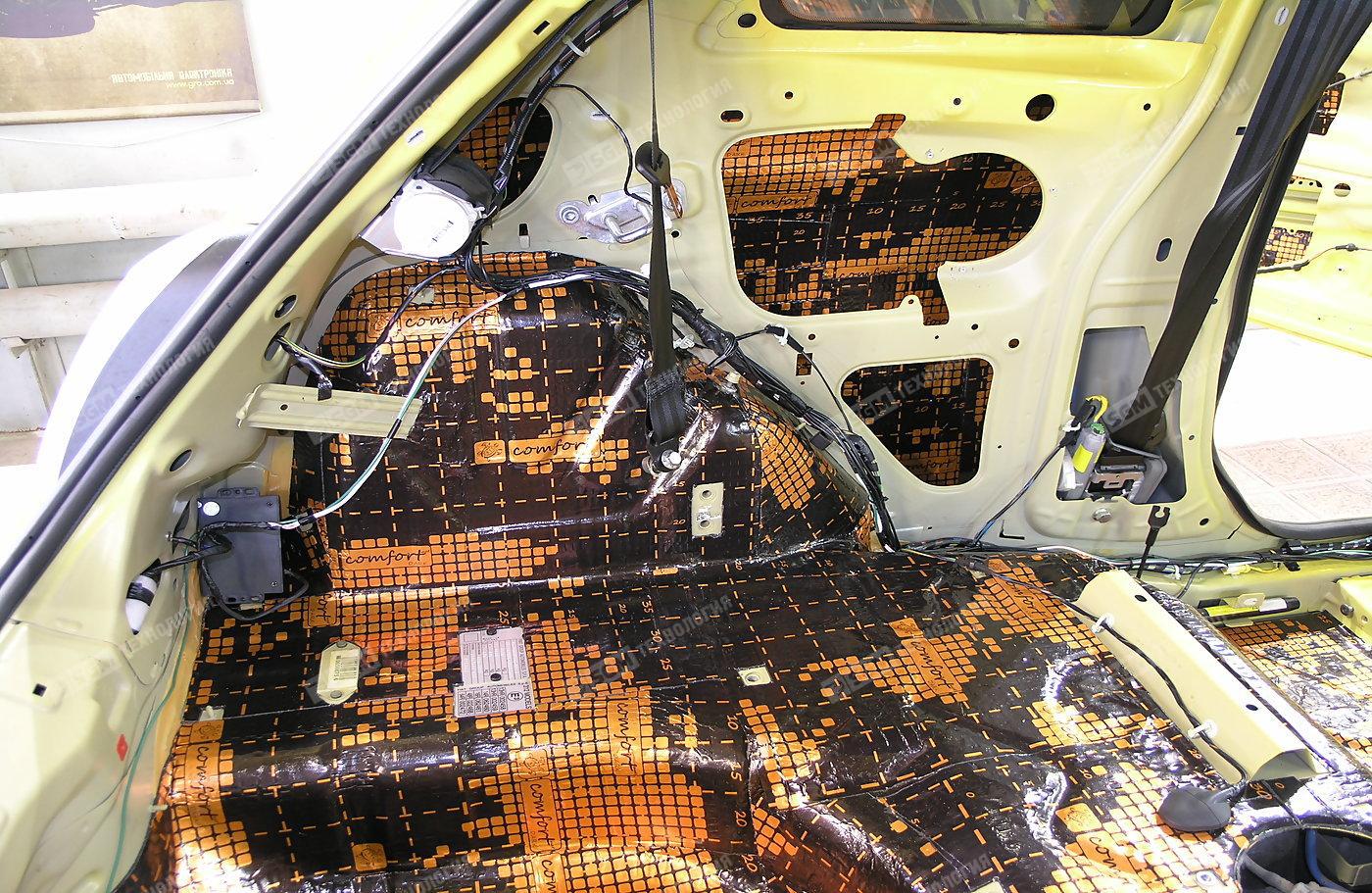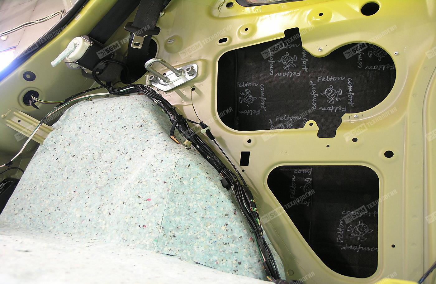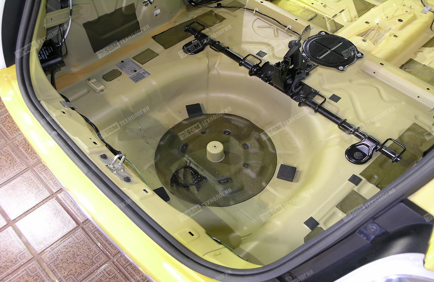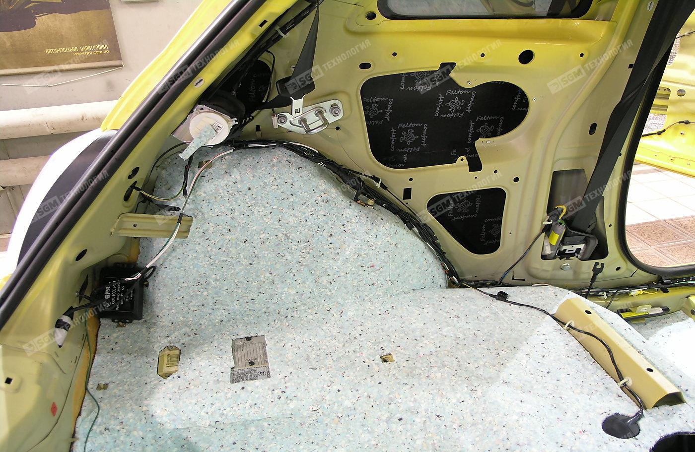 Шумоизоляция пола багажника и задних колесных арок выполняется звукопоглотителем Comfort Mat Lock4, а крылья закрываем Comfort Mat FELTON.