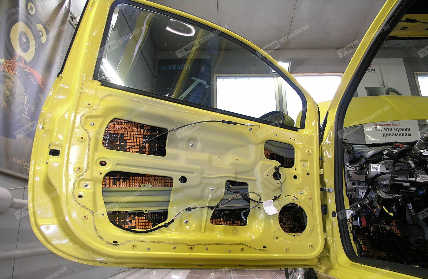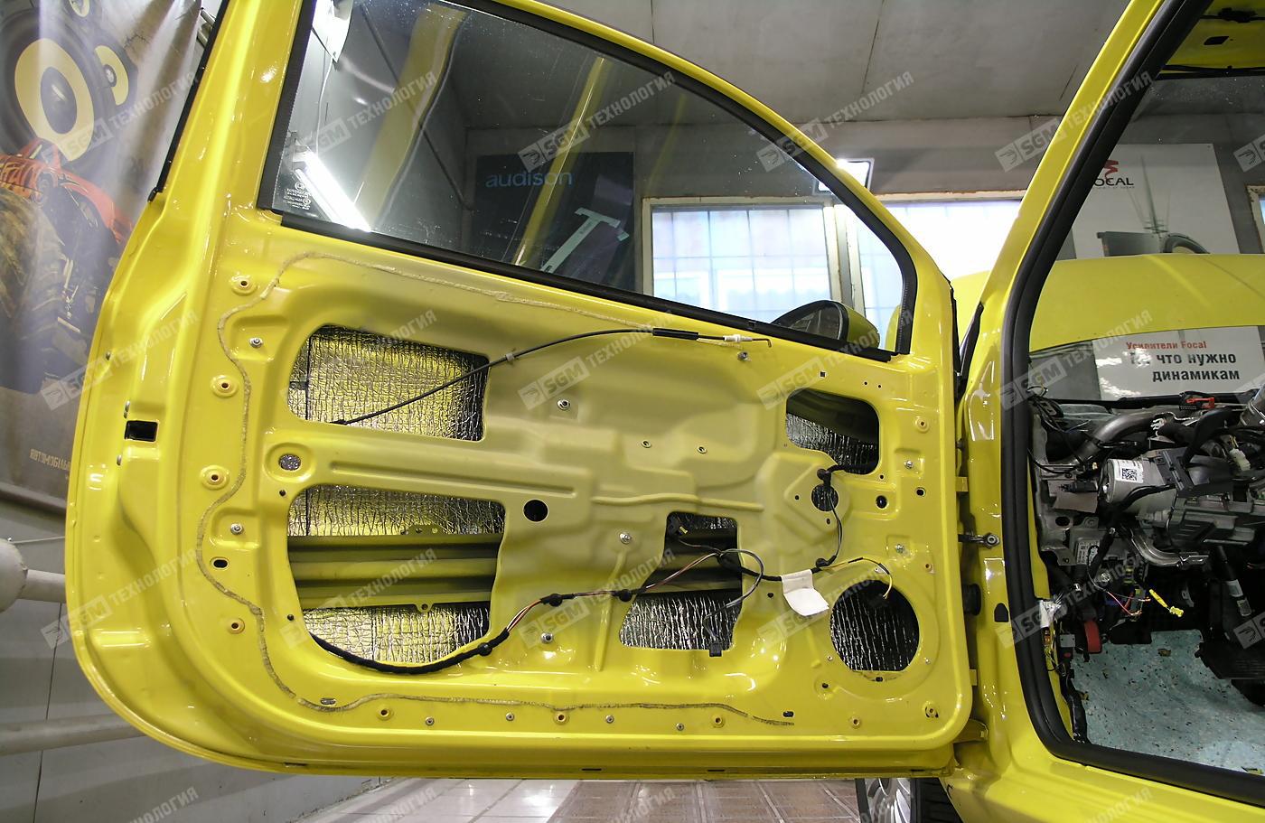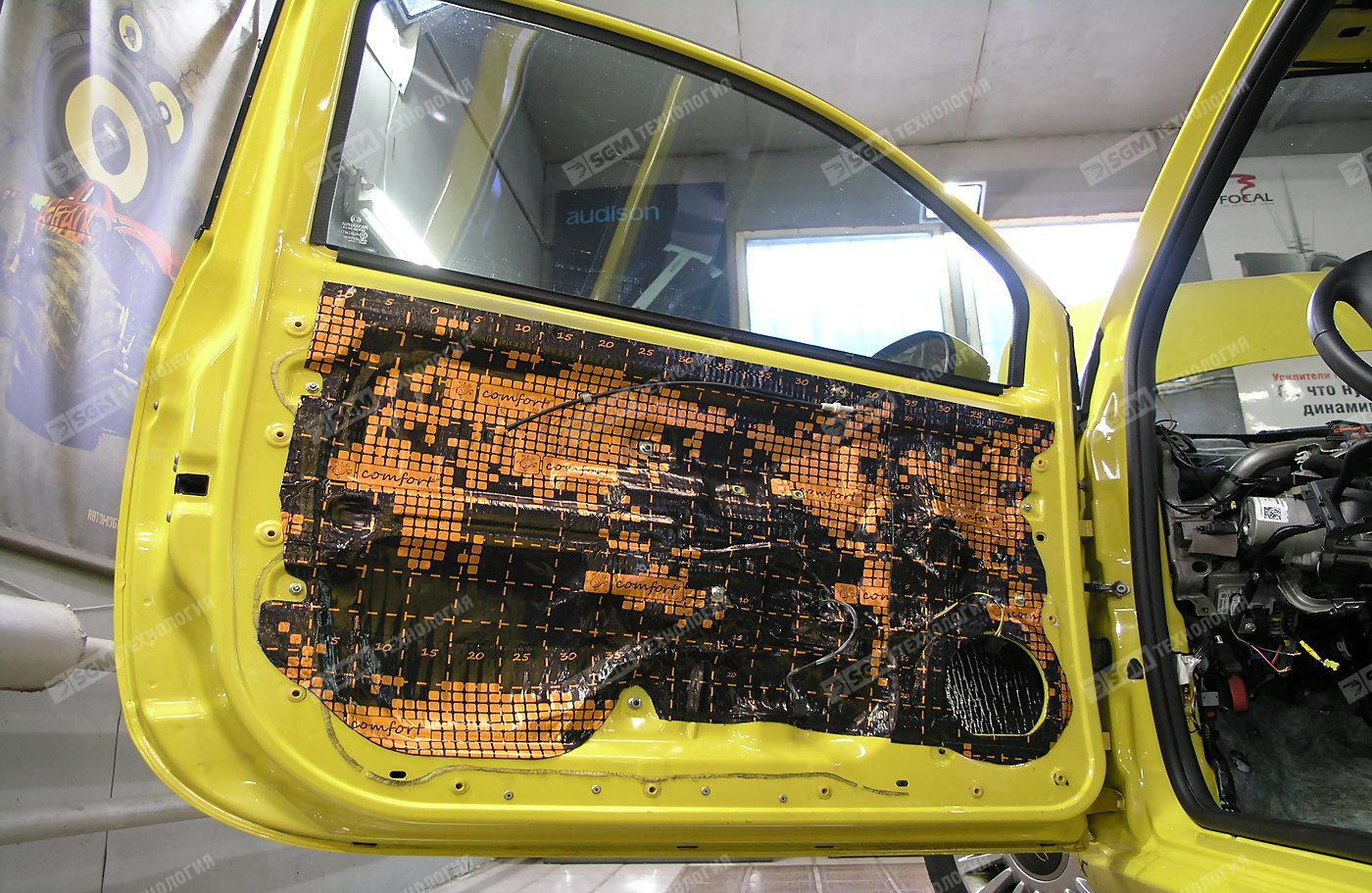 Шумоизоляция дверей Fiat 500, производится нами в 5 слоёв, так как в основном появление и проникновение звука и шума в салон автомобиля происходит у нас через двери.