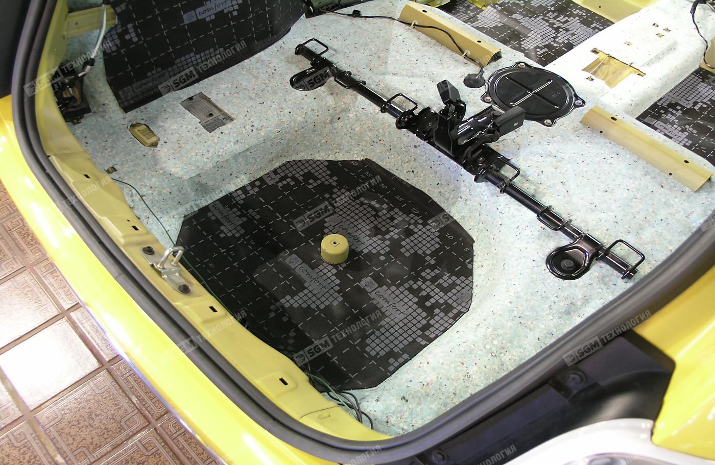 Шумоизоляция пола багажника и задних колесных арок Fiat 500.