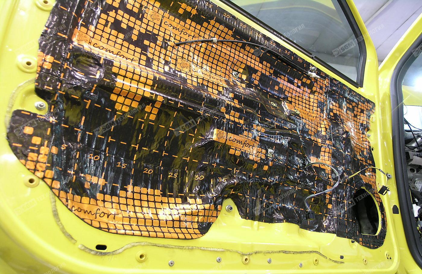 4-й слой: Используем самый современный на сегодняшний день поглотитель звука Comfort Mat Lock 4, который мы широко внедрили на замену устаревшим материалам располагаясь под картой двери, он будет поглощать всё то, что называется - искажениями акустической системы.