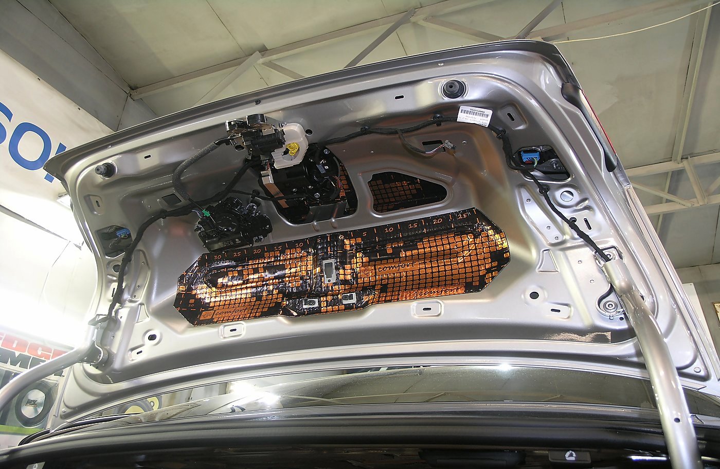 Крышка багажника VW PASSAT B8, демпфируется вибропластом Comfort Mat Dark D2.