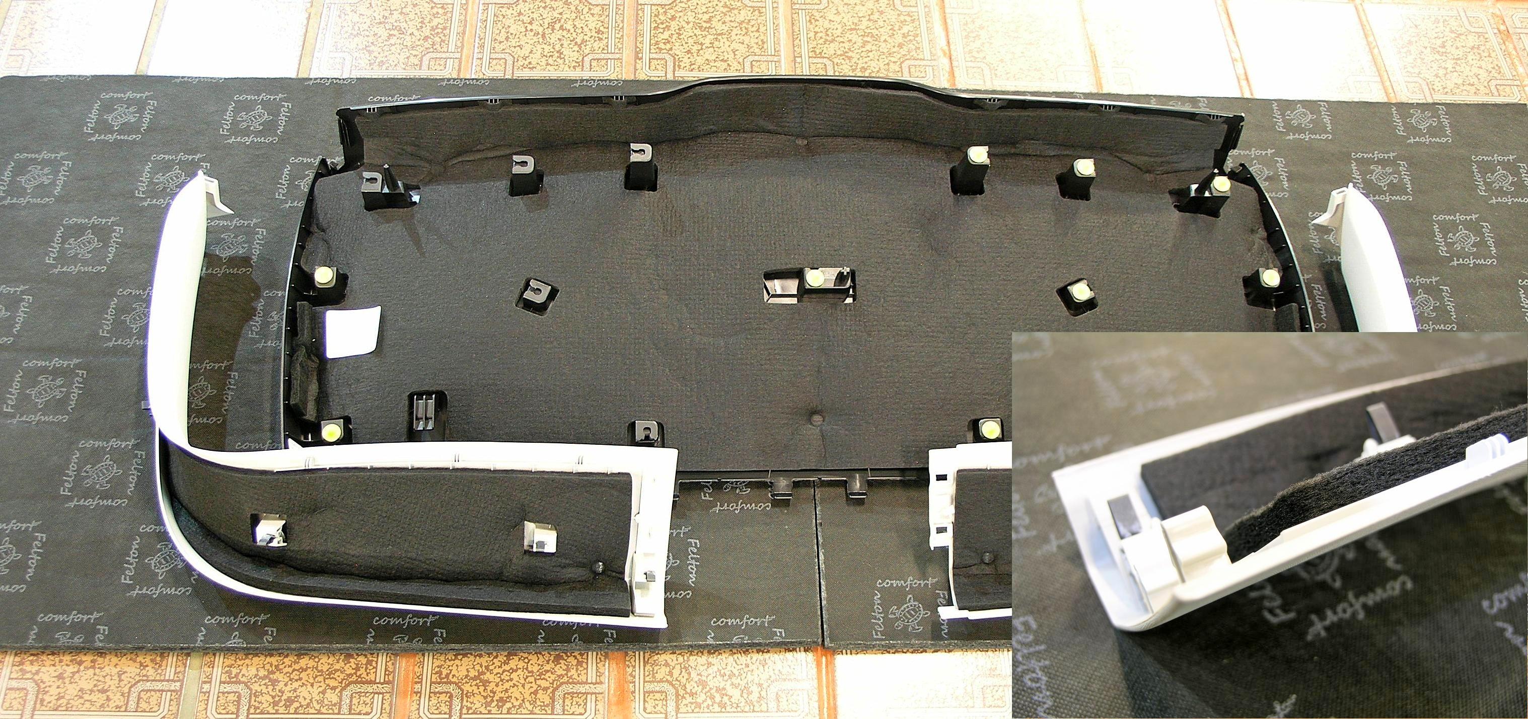 Ещё одно фото, это работа по обработке пластиковых деталей салона. Это тот объем работ, что зачастую остается за кадром. Но в данном случае мы покажем Вам, чем Mercedes ОТЛИЧАЕТСЯ от других автомобилей, это заводская обработка и наполнение пластиковых элементов салона шумопоглощающими материалами.