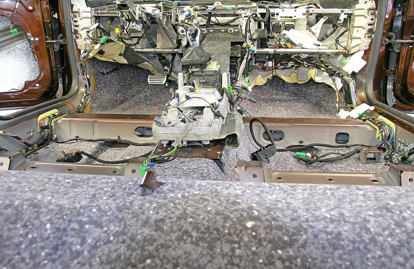 Шумоизоляция пола салона TOYOTA CAMRY V70. Мы разбираем и выносим из салона абсолютно все, что может помешать в нашей работе. Очищаем и устраняем все возможные загрязнения.