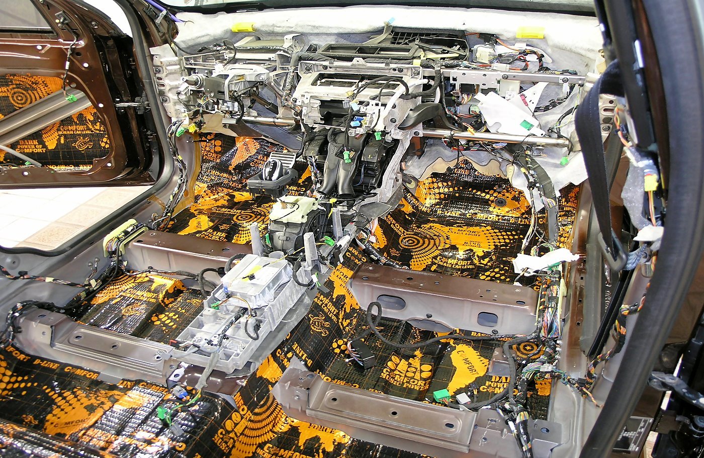 В первую очередь мы выполним максимальную шумоизоляцию автомобиля, с полным изменением внутрисалонного комфорта, устраним все недостатки заводской шумоизоляции. Устраним аэродинамический гул, уберем все скрипы и сверчки, устраним шум колёсных арок, уменьшим слышимость работы двигателя, улучшим звучание акустической системы, поменяем качество работы климата, утеплим автомобиль, изменим жёсткость кузова, изменим ощущение управляемости автомобиля и многое другое. Мы гарантируем качество сборки салона без щелей, зацепов или сломанных пистонов.