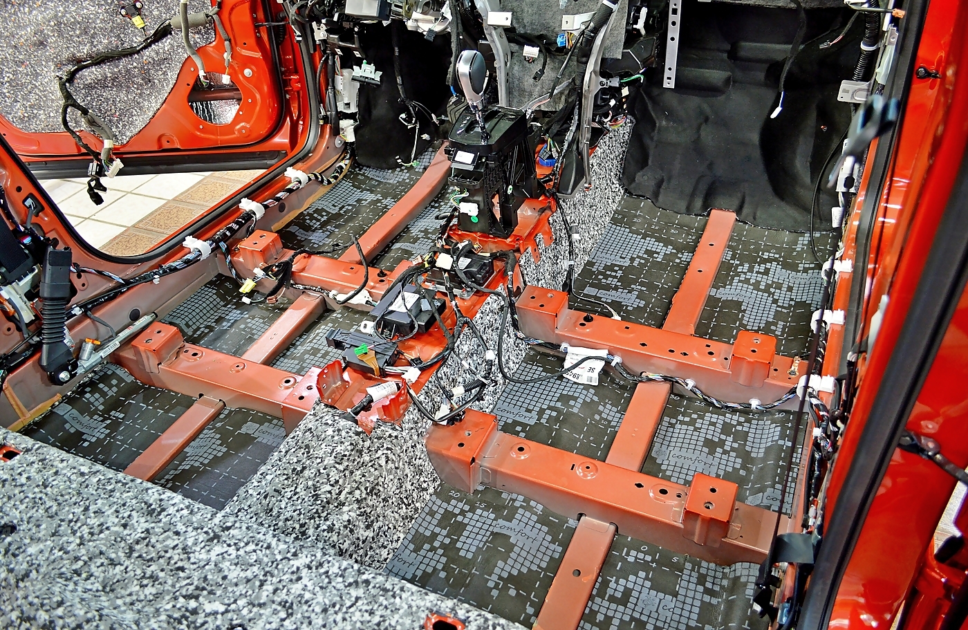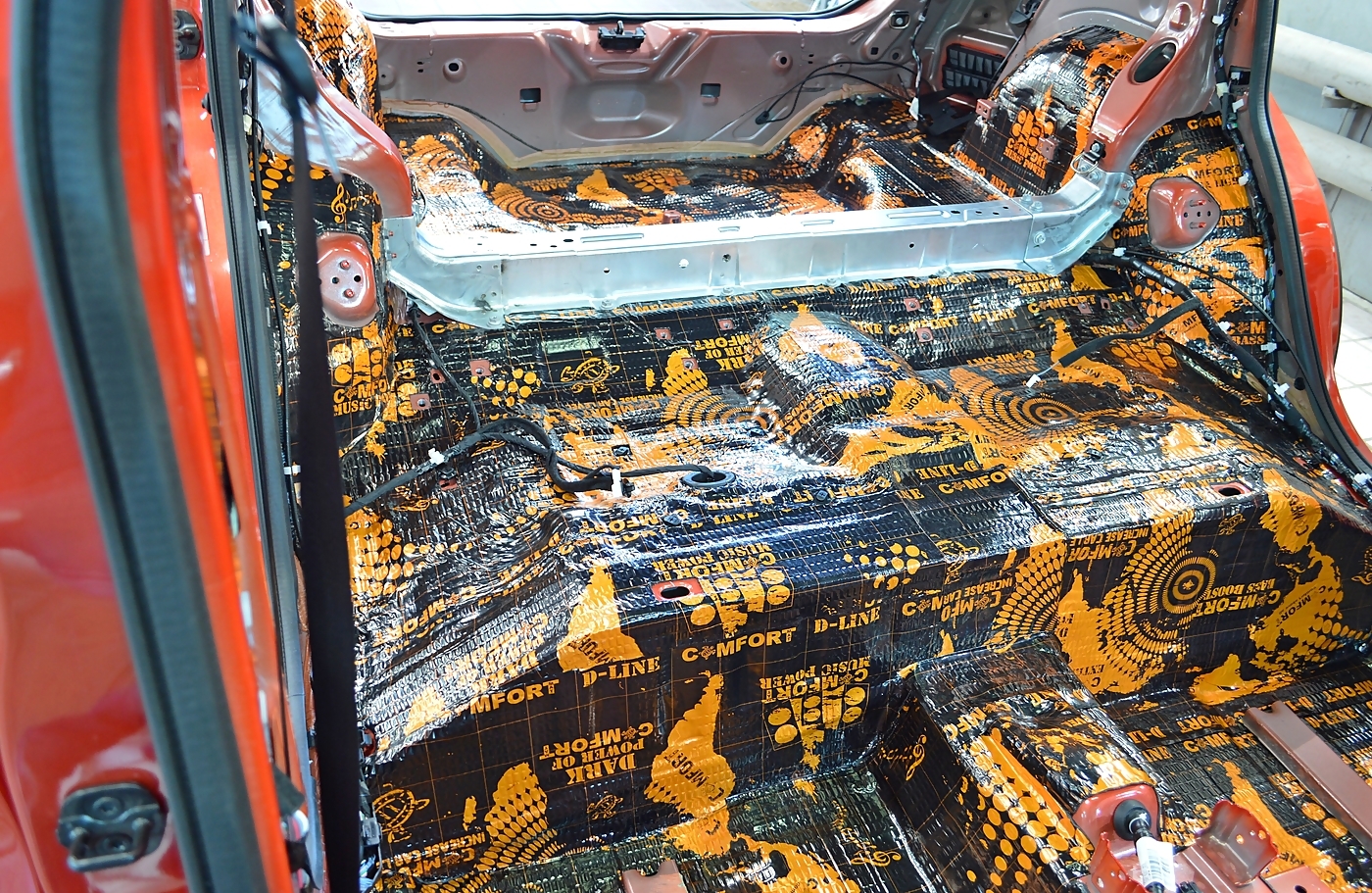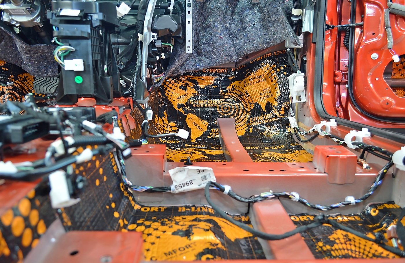 Обработка пола салона звукоизоляционной мембраной Comfort Mat BLOCKATOR