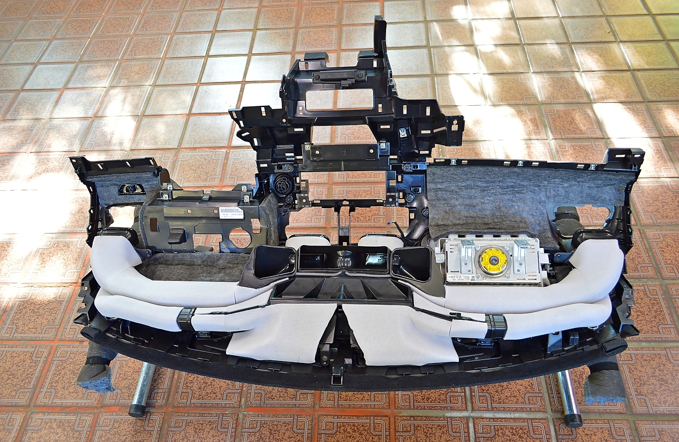 Для демпфирования пластика торпедо, используем первым слоем разработанный для пластика вибродепфирующий материал Comfort Mat Plastic P1. Прилягающие элементы и части торпедо обрабатываются и проклеиваются специальными материалами для стыковки и уплотнения деталей, воздуховоды проклеиваются прокладочным поролоном TURBO FLEX 5, а плоскости торпеды обрабатываются акустическим войлоком TURBO Войлок 10.