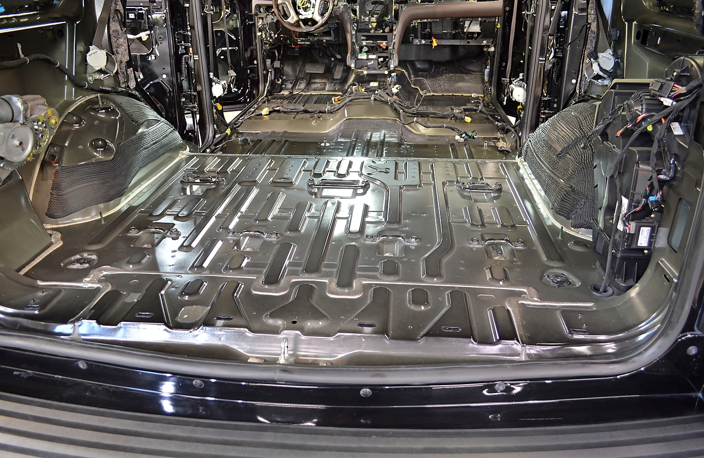 Шумоизоляция пола багажника и задних колесных арок Cadillac Escalade. Багажник разобран, металл обезжирен и готов к оклейке.