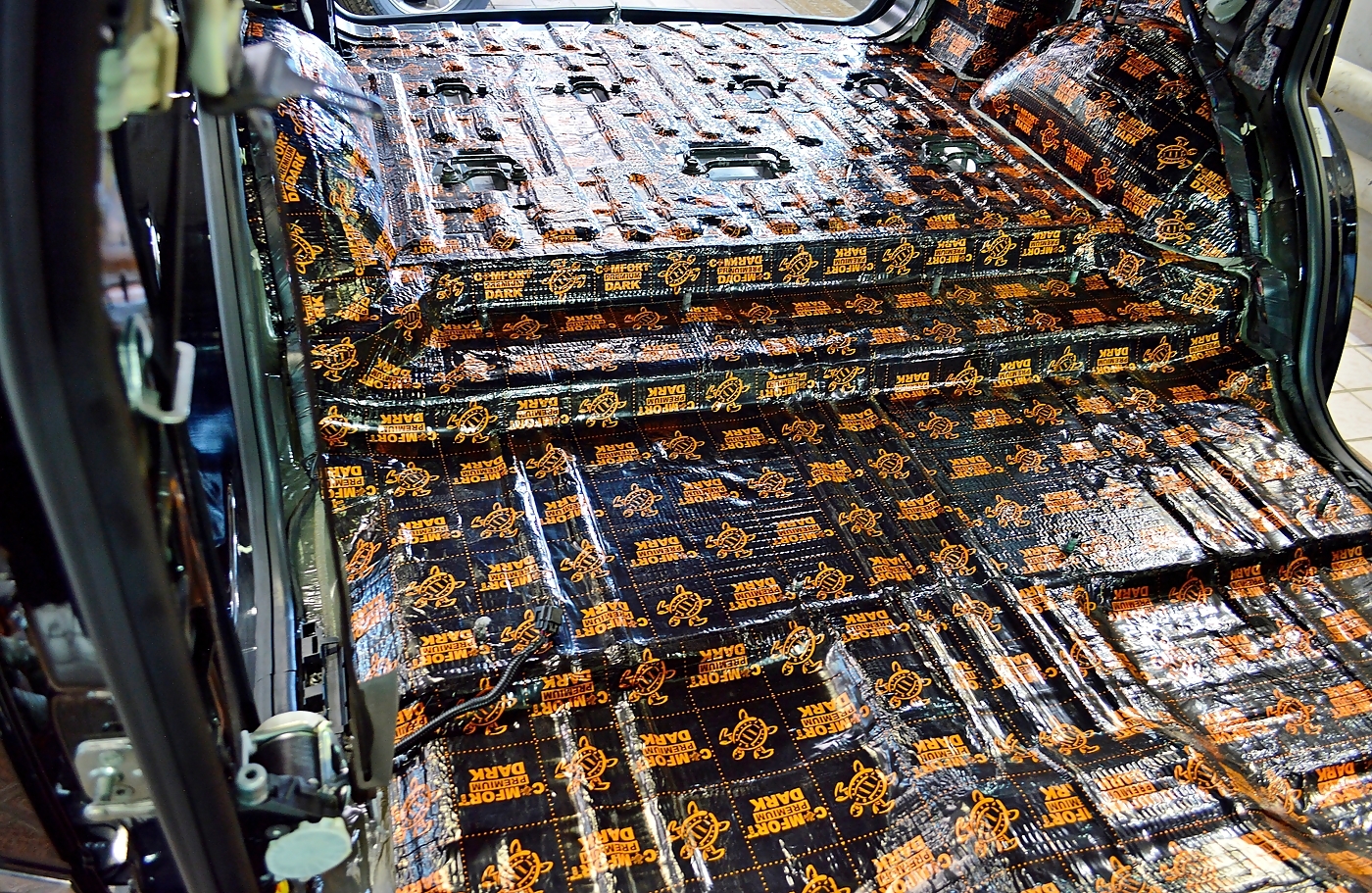 Пол багажника и крылья мы обрабатываем вибропластом Comfort Mat D-line D3, а задние колесные арки Comfort Mat D-line D4.