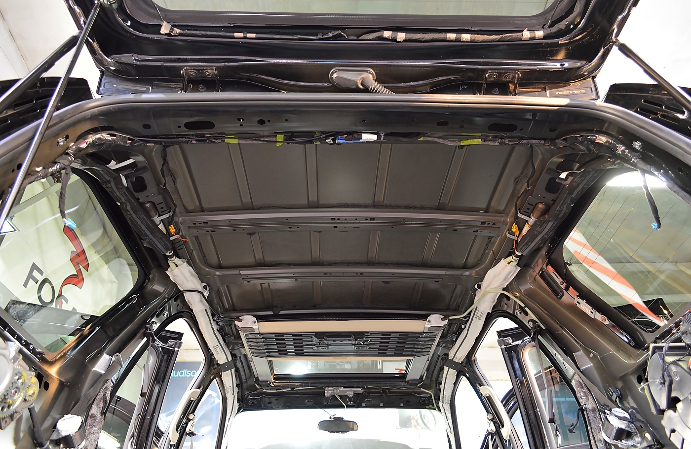 Шумоизоляция потолка Cadillac Escalade. Металл крыши очищается и обезжиривается.