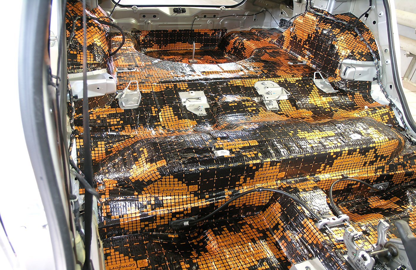 Следующий этап, это укладка шумоизоляционного или точнее звукопоглощающего слоя. В его роли у нас выступает шумопоглотитель Comfort Mat Lock 4 (данный материал не имеет аналогов на рынке звукопоглощающих материалов).
